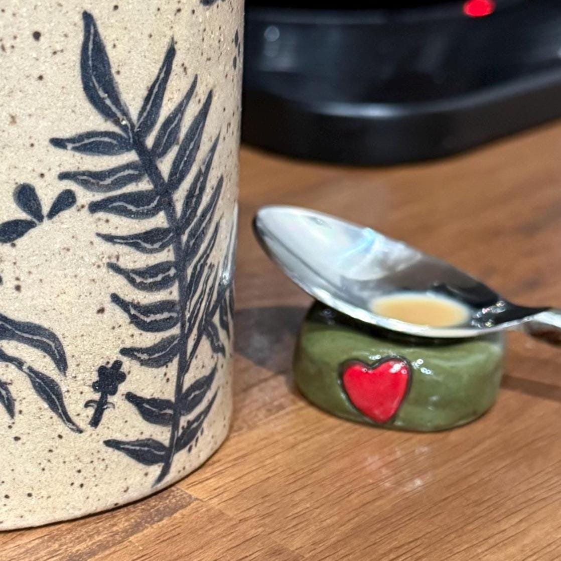Categories: All Mugs and Cups Bowls and Dishes Spoon Rests To Go Cups All / Spoon Rests Handcrafted Mini Olive Spoon Rest: Ceramic Kitchen Utensil Rest $15.00 Add To Cart Added! Mini Pepper Spoon Rest $15.00 Add To Cart Added!